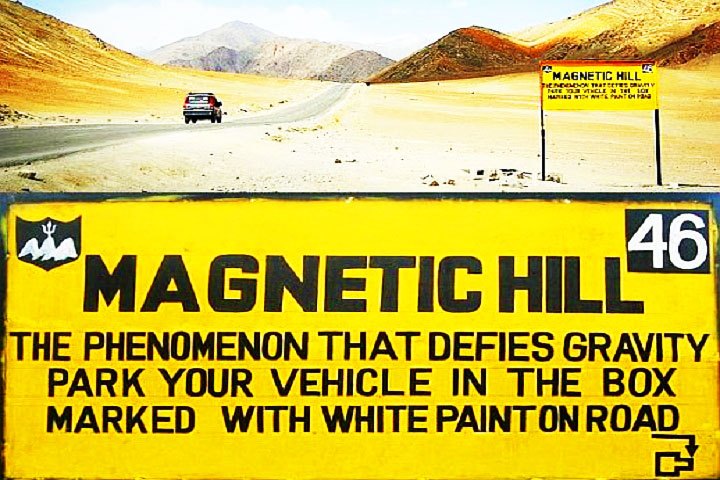 Amid the best tourist places in Leh and Ladakh, Magnetic Hill is one of the famous places in Leh and Ladakh located at an altitude of 14,000 ft near Leh in Ladakh. With other Leh and Ladakh attractions, this gravity hill with some strong magnetic properties is one of the top attractions in Leh and Ladakh. In a strange manner, this hill pulls all cars uphill and is known as one of the top places near Leh and Ladakh to visit. With proper tourist ambiance around, it is one of the most popular visiting places in Leh and Ladakh. Your search for top Leh and Ladakh sightseeing places and Leh and Ladakh tourist attraction places comes to an end with this hill that scientists claim possesses some optical illusions. It is just one of the best sightseeing places in Leh and Ladakh visited by millions of travelers from all walks of life. When you think of visiting this hill as the best places in Leh and Ladakh to see, be sure to buy the best Leh and Ladakh sightseeing package promoting Magnetic Hill as a part of sightseeing at Leh and Ladakh.